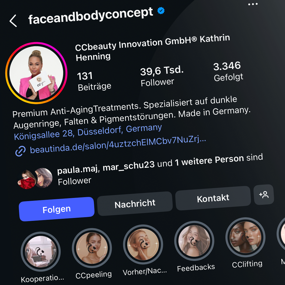 Jahrzehntelang gab es gegen dunkle Augenringe, Pigmentflecken und Falten keine wirksame Lösung. Auch bei müder Haut und ersten Altersanzeichen blieb nur die Wahl zwischen oberflächlicher Kosmetik oder invasiven Eingriffen, doch beide stießen an ihre Grenzen. Mit unseren Signature Treatments CCpeeling®, CCeye® und CClifting® haben wir eine dritte Möglichkeit geschaffen, die das Hautbild grundlegend erneuert, von müde zu strahlend, von fahl zu vital, von alt zu jünger. Unsere Ansätze verbinden Wissenschaft und Kosmetik, entwickelt in Deutschland, dermatologisch zertifiziert und wissenschaftlich inspiriert. Das Ergebnis ist eine Hauttransformation, dauerhaft und revolutionär. Meine Mission ist es zu zeigen, dass echte Innovation keine Operation braucht und mehr bewirkt als jede oberflächliche Kosmetik.